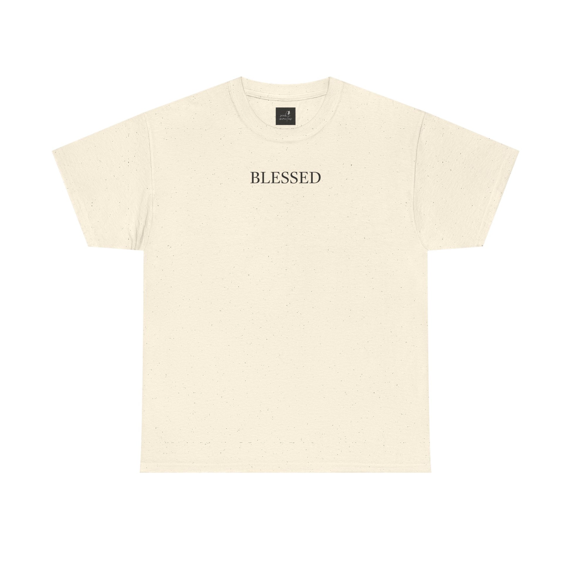 Soft, breathable, and quietly confident — this classic cotton tee carries a simple, small chest print that reads “BLESSED” in an understated serif. It sits mid-chest for a low-key statement that fits into everyday life: coffee runs, Sunday walks, slow mornings at home, and casual meetups. The medium-weight cotton holds structure without feeling stiff. The crew neck keeps the silhouette familiar and relaxed, while the tear-away label and shoulder tape make it comfortable for long wear. Wear it layered under a jacket or on its own; the minimal typography and clean white canvas let the word speak softly while the fabric does the heavy lifting.